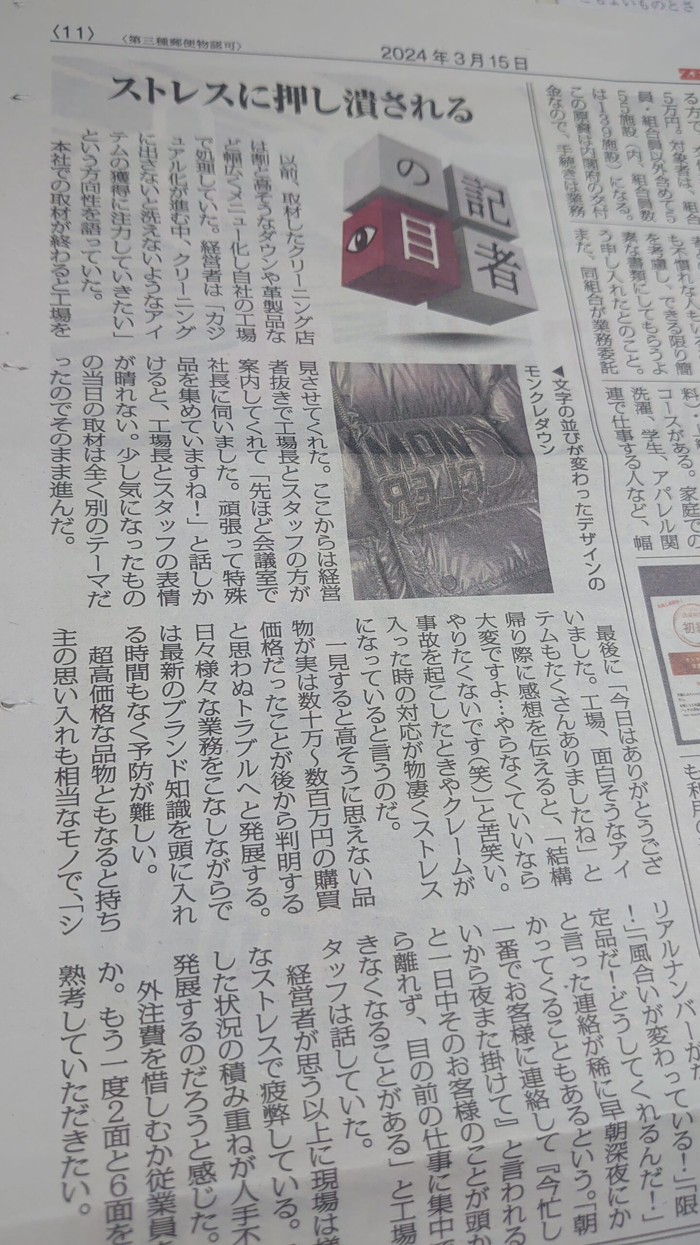 クリーニング事故品について